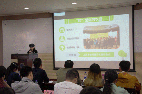 图片说明:论坛现场环保社团进行PPT展示