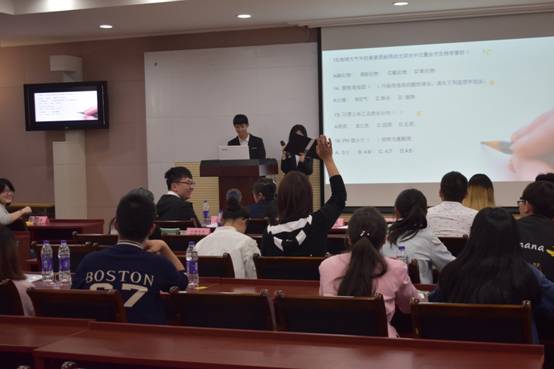 中场休息过后,迎来环保知识抢答游戏环节,同学们踊跃参与竞猜,在收获精美奖品的同时也拓展了自己的环保知识。随后,现场播放关于大学生环保意识调查采访的视频,引起了在场同学的强烈共鸣。