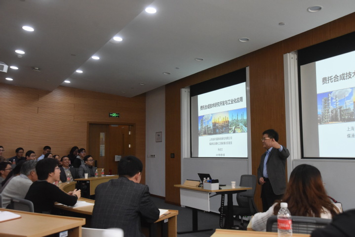 报告会由洁净煤技术研究所王辅臣教授主持。孙启文博士结合自己的成长和工作经历,在报告中从费托合成反应过程基本概念与基本原理入手,深入浅出地介绍了费托合成技术应用开发与工业化案例。其领衔开发的高温费托合成技术,已成功应用在陕西未来能源化工有限公司,这是我国首套采用自主研发并完全拥有自主知识产权的技术建设的高温费托合成工业化示范装置。报告最后,孙启文博士还指出规模化多联产是费托合成技术的应用发展方向,并与师生进行了广泛的互动交流,解答了师生关注的一些热点问题。