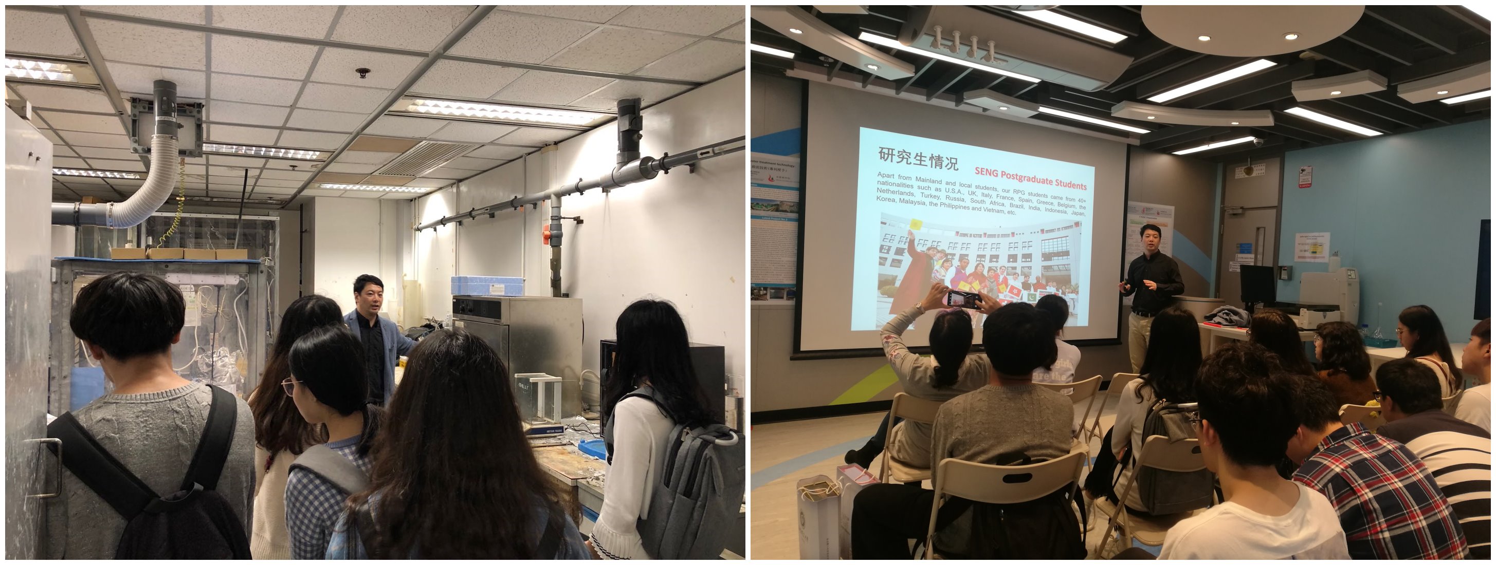 2月21日,访学团来到香港科技大学,在香港科技大学土木工程系终生教授、环境工程专业主任陈光浩教授安排下,同学们参观了环境工程实验室,详细了解了分析仪器实验室、反应实验室的具体情况。最后与港科大土木工程系负责本科生和研究生教研工作的吴镝老师进行座谈交流,了解香港科技大学的概况、研究生招生政策及申请硕士或博士的条件及注意事项。