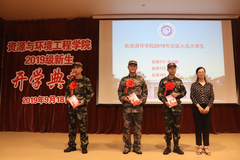 开学典礼上,学院组织了2019年应征入伍学生欢送会,曹娜代表学院对即将踏上军营新征程的3位新兵佩戴大红花并赠送纪念品。学院还精心挑选了书籍《红星照耀中国》赠送给学生,期望入伍学生能继承长征精神,到祖国各地建功立业。