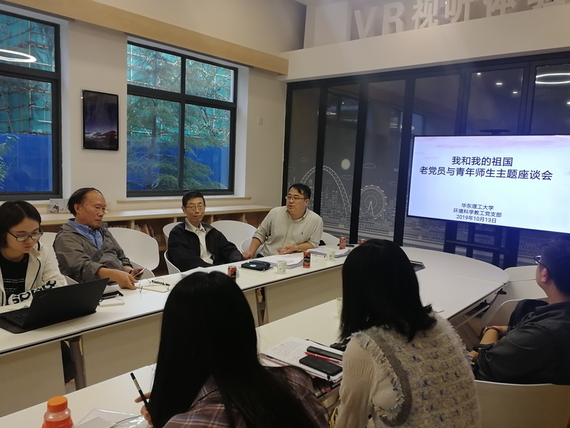 为庆祝新中国成立70周年,结合学院“不忘初心、牢记使命”主题教育,环境科学教工党支部于2019年10月13日在徐汇校区图书馆“明德书房”开展了以“我和我的祖国”为主题的老教授与青年师生交流的主题活动。支部邀请了资环学院退休教授张大年和中国科学院上海应用物理研究所退休教授张桂林与环境科学党支部大气环境污染与风险管理科研团队的青年教师和研究生分享人生经历、科研经验,传递不忘初心,勇担使命的科技创新精神;活动由资环学院党委书记修光利主持,支部副书记周磊老师及近50名师生参加了主题活动。