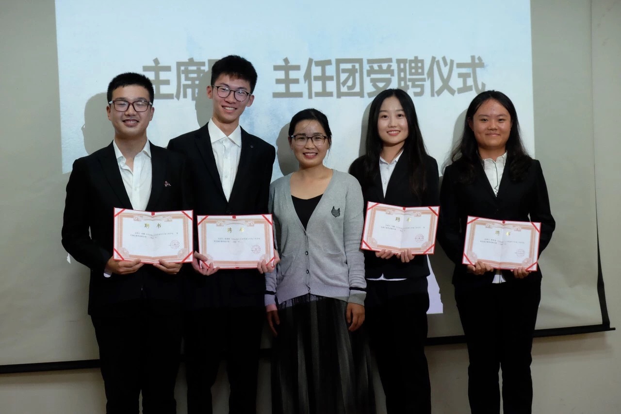随后大会进行了团委副书记、学委会主任团成员、学生会主席团成员以及26个部长团的受聘仪式。