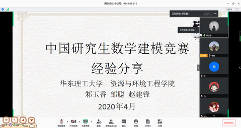 2020年4月23日,18级环境安全硕士党支部通过“腾讯会议”在线上召开了数模竞赛经验分享交流会。本次科学道德和学风建设活动的主要内容是邀请两名数模竞赛获奖的同学分享参赛的技巧和经验。此外,党支部还邀请了学院内想要了解参加数模竞赛的同学参加会议,共同交流,答疑解惑。