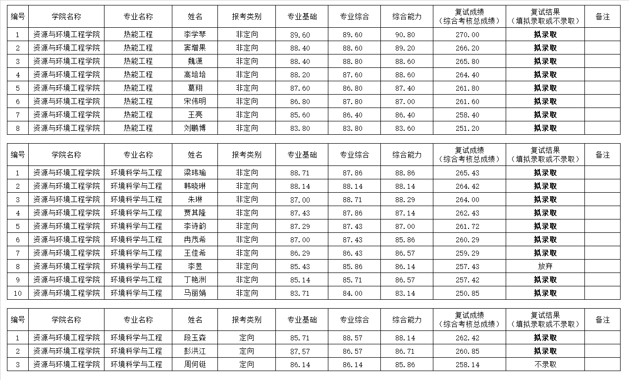 制博士研究生招生复试成绩及结果公布如下。
