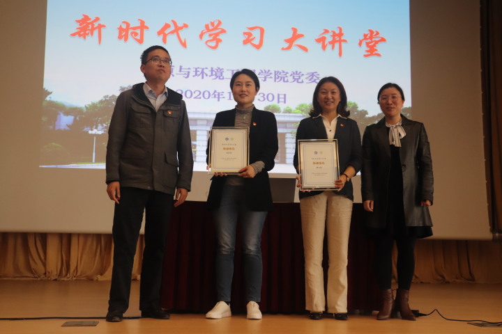 现场师生还与两位专家进行了互动交流,资环学院副院长陈雪莉、孙贤波共同为唐文娟书记和宋琼芳副主任颁发了“新时代学习大讲堂”特邀报告证书。