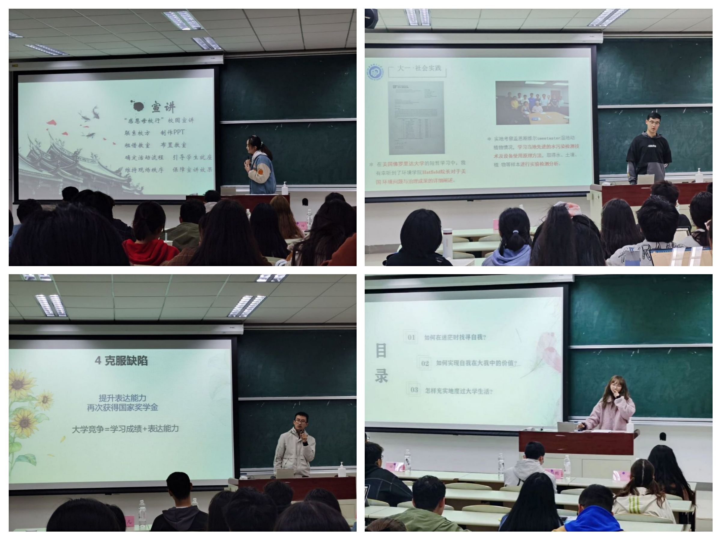 来自能源172班的黄林鹏学长用“冷热有度,能量无限”八个字概括自己的大学生活,鼓励学弟学妹们遇坎坷则调整方向,陷阴霾则努力奔向阳光。大学竞争力=学习能力+表达能力”,无论自己哪一方面有缺失,都要正视,努力去改正,才能在一次次竞争中提升自己的实力,获得更高的荣誉。
