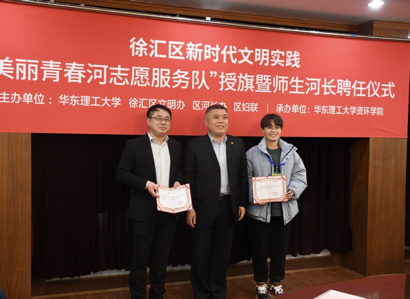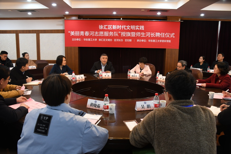 3月5日,适值我国第58个学雷锋纪念日、第22个“中国青年志愿者服务日”的到来。资环学院在徐汇校区逸夫楼举行了徐汇区新时代文明实践——“美丽青春河志愿服务队”授旗暨师生河长聘任仪式。徐汇区委宣传部副部长、文明办主任杨海英,区河长办、徐汇区建设和管理工作党委书记薛莲,徐汇区生态环境局党组书记李侃等一行出席仪式。kaiyun开云官网副校长李涛,党委常委、宣传部部长夏江雯,校团委书记侯宇,校安全办主任、河长办主任徐宏勇,资环学院党委书记修光利等师生代表出席活动。仪式由资环学院党委副书记饶志雄主持。