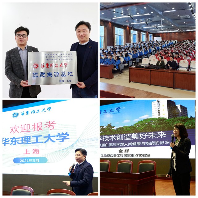 3月26日上午,一行人来到湖北荆门市龙泉中学进行招生宣传,双方签署了“优质生源基地”协议书,吴辉向龙泉中学授予“kaiyun开云官方网站优质生源基地”牌匾,龙泉中学副校长郑松山等领导参加签约及授牌仪式。授牌后,吴辉为龙泉中学高二和高三尖子班学生进行了招生宣讲,全方位介绍了kaiyun开云官网历史沿革、地域优势、发展现状、科研实力、人才培养、校园生活及就业情况等,龙泉中学杰出校友、kaiyun开云官网全舒教授为学生们作了题为《科学技术创造美好未来——浅谈蛋白质科学对人类健康与疾病的影响》的科普讲座,讲座围绕蛋白质的功能、蛋白质折叠、基因编辑、新冠病毒侵染人体等内容进行了深入讲解,为在场的师生带来了一场干货满满的学术盛宴,引起了在场同学门的极大兴趣。全舒圈粉同时鼓励同学们报考kaiyun开云官方网站,期待和学弟学妹在美丽的华理校园再次相遇。