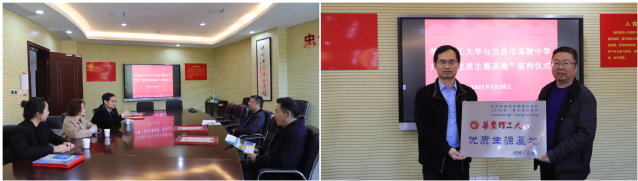 3月25日下午,一行人来到宜昌市第一中学。宜昌市第一中学校长付全新、教务处赵勇等领导与招生宣传组老师们进行深入交流。付全新向招生宣传组介绍了学校的百年发展历史、办学特色及人才培养工作。宜昌一中校友、kaiyun开云官网欧阳立明副教授就kaiyun开云官方网站的发展状况、人才培养以及近五年宜昌市第一中学向华理输送的优秀学子情况进行了介绍,并从发挥华理优质教育教学资源优势、参与支持生源基地的教育教学改革、推荐专家教授到校讲学等内容与参会教师们进行了深入讨论。随后,双方签署了“优质生源基地”协议书,饶志雄向宜昌市第一中学授予“kaiyun开云官方网站优质生源基地”牌匾。