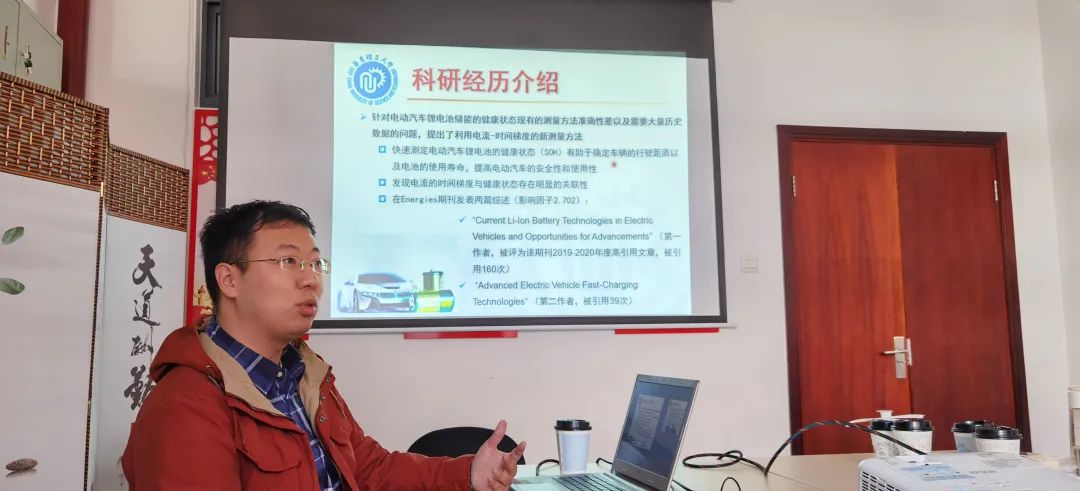 本场茶话会一开始,苗雨老师就向我们做了简短而幽默的自我介绍,搭配上投影仪放映的精美的PPT,足以让我们看出老师的精心准备。因为在去年11月才刚刚加入到华理资环学院的队伍中,为了进一步加深我们的了解,苗雨老师又详细介绍了他的科研经历,也让同学们对能源前沿技术有所认识。