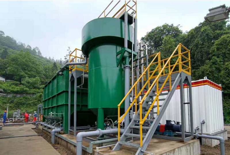 我国页岩气可采储量超过30万亿立方米,位居世界第一,但是绿色环保生产的压力,已是制约页岩气进一步发展难题之一。页岩气田压裂返排液具有高盐、高硬、高有机物、高悬浮物等特点,太阳-大寨区块页岩气压裂返排液悬浮物最高达2000mg/L,平均悬浮物800mg/L。同时环保新政对回注水水质要求也不断提高,按照项目现场井的注入层平均空气渗透率等相关参数,要求回注水悬浮物低于15mg/L。传统处理工艺难以达到回注标准,且设备占地面积大,加药量大,运行成本高。