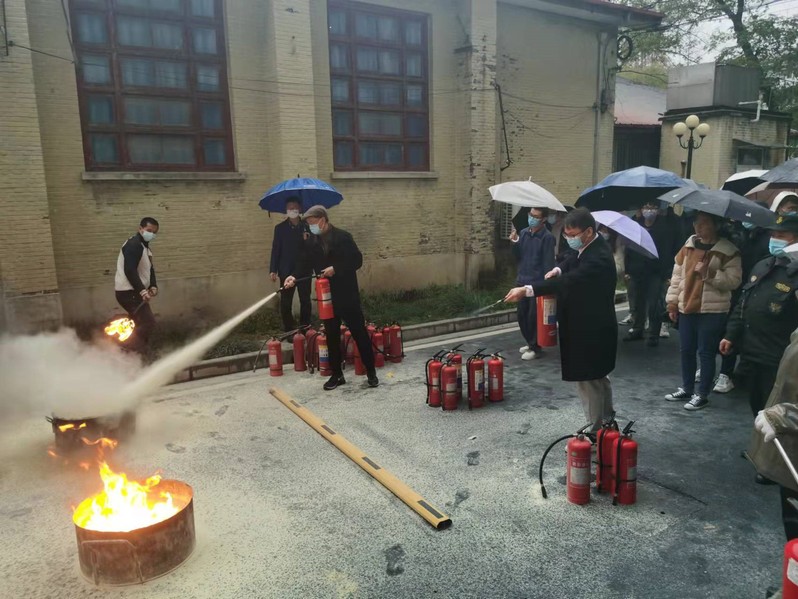 为进一步增强师生员工的消防安全防火意识,切实提升师生消防应急处置能力,2021年12月12日下午,在图书馆西侧广场,学校保卫处同志冒雨为国家盐湖资源综合利用工程技术研究中心师生进行消防安全教育和灭火器使用培训,并指导大家实际操练。安全教育培训由校保卫处消防安全管理岗负责人段凯洋主持,中心主任于建国教授等90余名师生参加了培训。