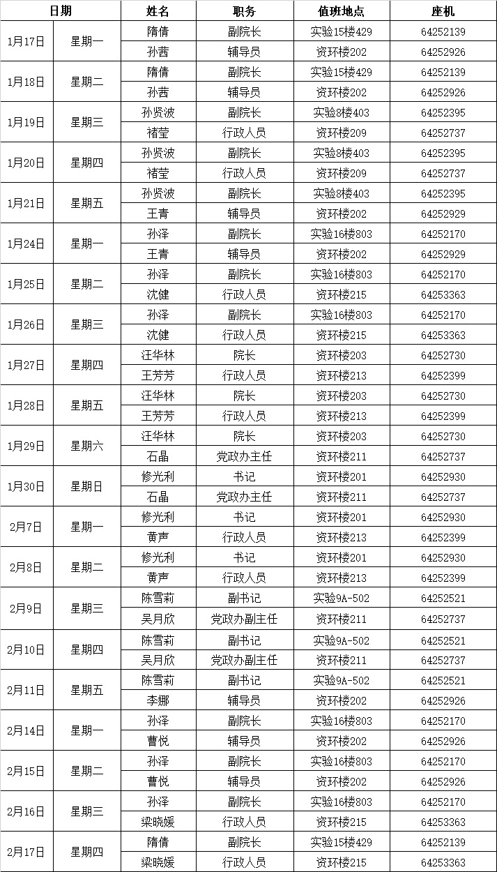 kaiyun开云官方网站2021-2022学年寒假二级单位值班安排表