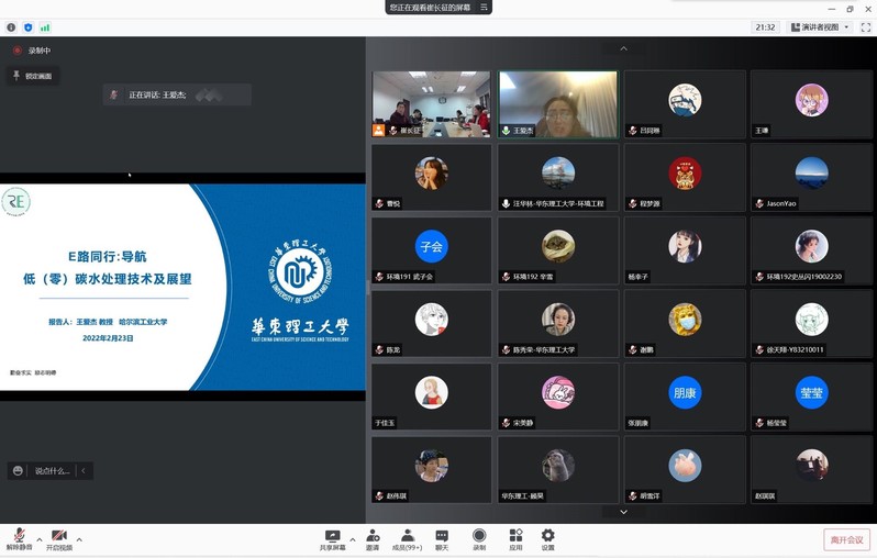 2月23日,哈尔滨工业大学教授、城市水资源与水环境国家重点实验室(深圳)主任、国家杰出青年科学基金获得者王爱杰教授受邀作专题学术讲座,讲座题目为“低(零)碳水处理技术与展望”。资环学院院长汪华林教授,生态环境部重点实验室教授崔长征及学院师生300余人共同线上参加。讲座由崔长征主持。
