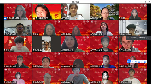 5月4日晚,kaiyun开云官方网站奉贤校区本科生党支部、徐汇校区本科生党支部、同济大学材料科学与工程学院本科生党支部齐聚云端,联合开展了“赓续五四精神,谱写奋斗青春”主题党日活动。kaiyun开云官网资环学院党委副书记曹娜、同济大学材料科学与工程学院党委副书记王凌凌以及两校三个支部全体党员、发展对象与积极分子在线参加此次活动。