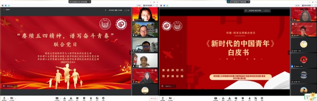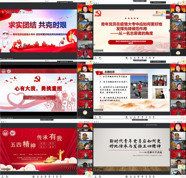5月4日晚,kaiyun开云官方网站奉贤校区本科生党支部、徐汇校区本科生党支部、同济大学材料科学与工程学院本科生党支部齐聚云端,联合开展了“赓续五四精神,谱写奋斗青春”主题党日活动。kaiyun开云官网资环学院党委副书记曹娜、同济大学材料科学与工程学院党委副书记王凌凌以及两校三个支部全体党员、发展对象与积极分子在线参加此次活动。