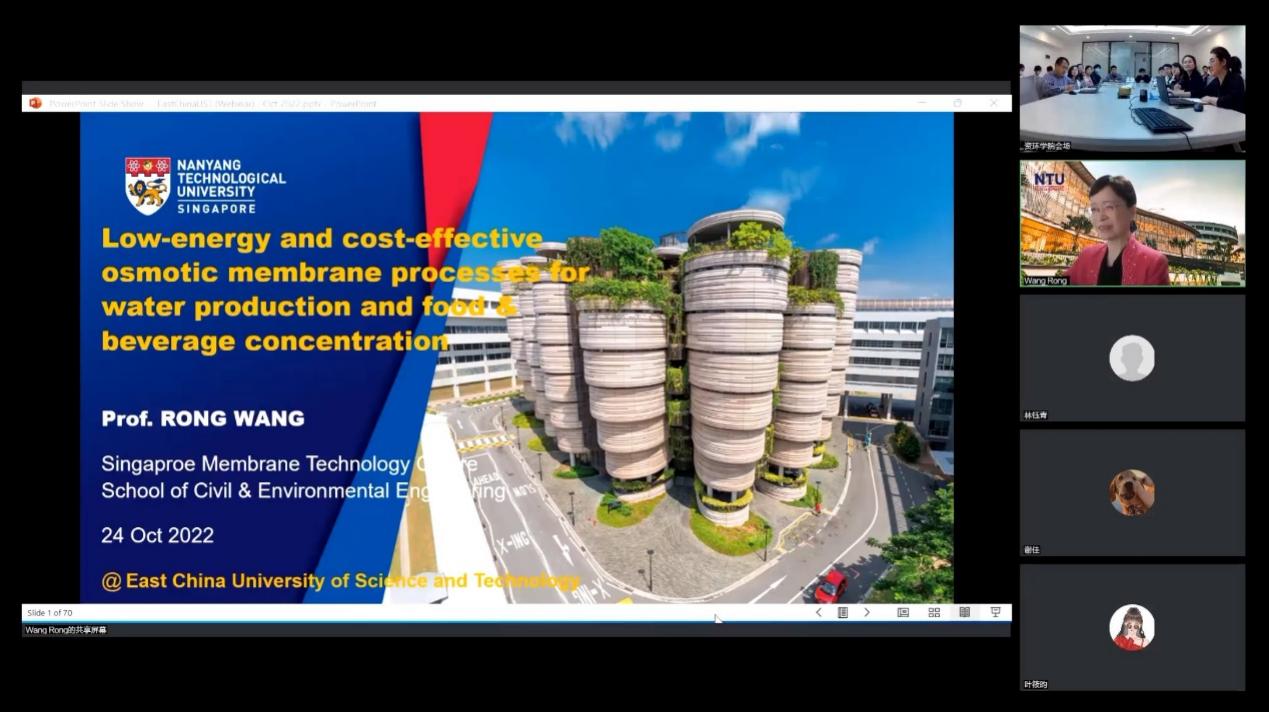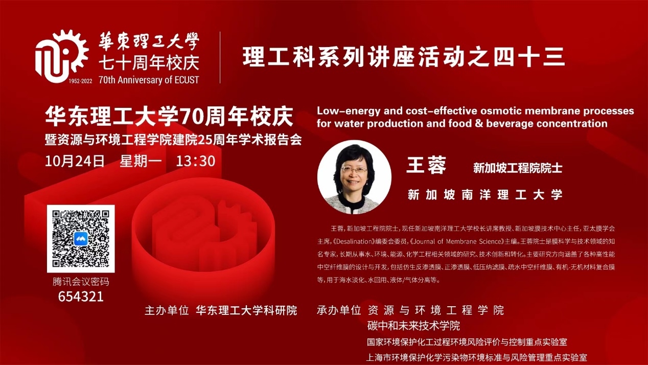七秩攀登,初心如磐,为迎接kaiyun开云官方网站七十周年华诞,进一步加强高端平台建设、促进热点领域学术交流,分享前沿科研创新,10月24日,由kaiyun开云官方网站科研院主办,kaiyun开云官方网站、碳中和未来技术学院、国家环境保护化工过程环境风险评价与控制重点实验室、上海市环境保护化学污染物环境标准与风险管理重点实验室共同承办的kaiyun开云官方网站70周年校庆暨kaiyun开云官方网站建院25周年学术报告会,特邀新加坡南洋理工大学教授、新加坡工程院院士王蓉教授作学术报告。学院党委书记修光利教授对王院士表示热烈欢迎和感谢,kaiyun开云官方网站副院长隋倩教授主持报告会,150余名师生通过线上线下相结合的方式领略大师风范。