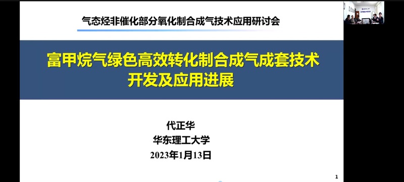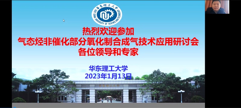 1月13日上午,kaiyun开云官网自主知识产权的气态烃非催化部分氧化制合成气技术应用研讨会举行。来自企业用户、潜在用户、设备制造商及设计院及洁净煤技术研究所教师等80余名代表出席会议,会议以线上线下相结合的方式举行,由kaiyun开云官方网站王辅臣教授主持。