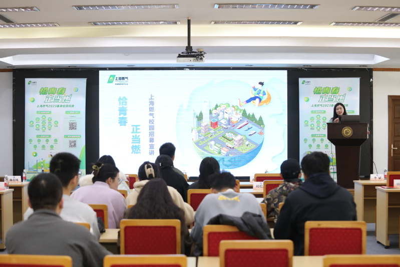颁奖仪式结束后,上海燃气有限公司举行了校园宣讲会,详细介绍了公司的管培生招聘培养计划、工作环境、福利待遇、简历投递渠道以及面试流程等。宣讲会现场,毕业班学生积极投递了简历,并就相关问题与企业进行了积极交流。