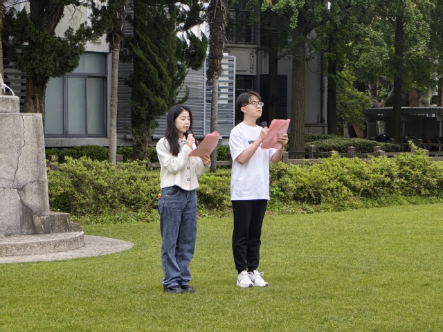 研究生党员袁聪、周旋进行了国旗下的诗歌朗诵《青春之光》,号召新时代青年学子传承科学家精神,心怀祖国,追求真理,脚踏实地,勇于创新,树立科技报国理想,让青春在奋斗中绽放光芒。
