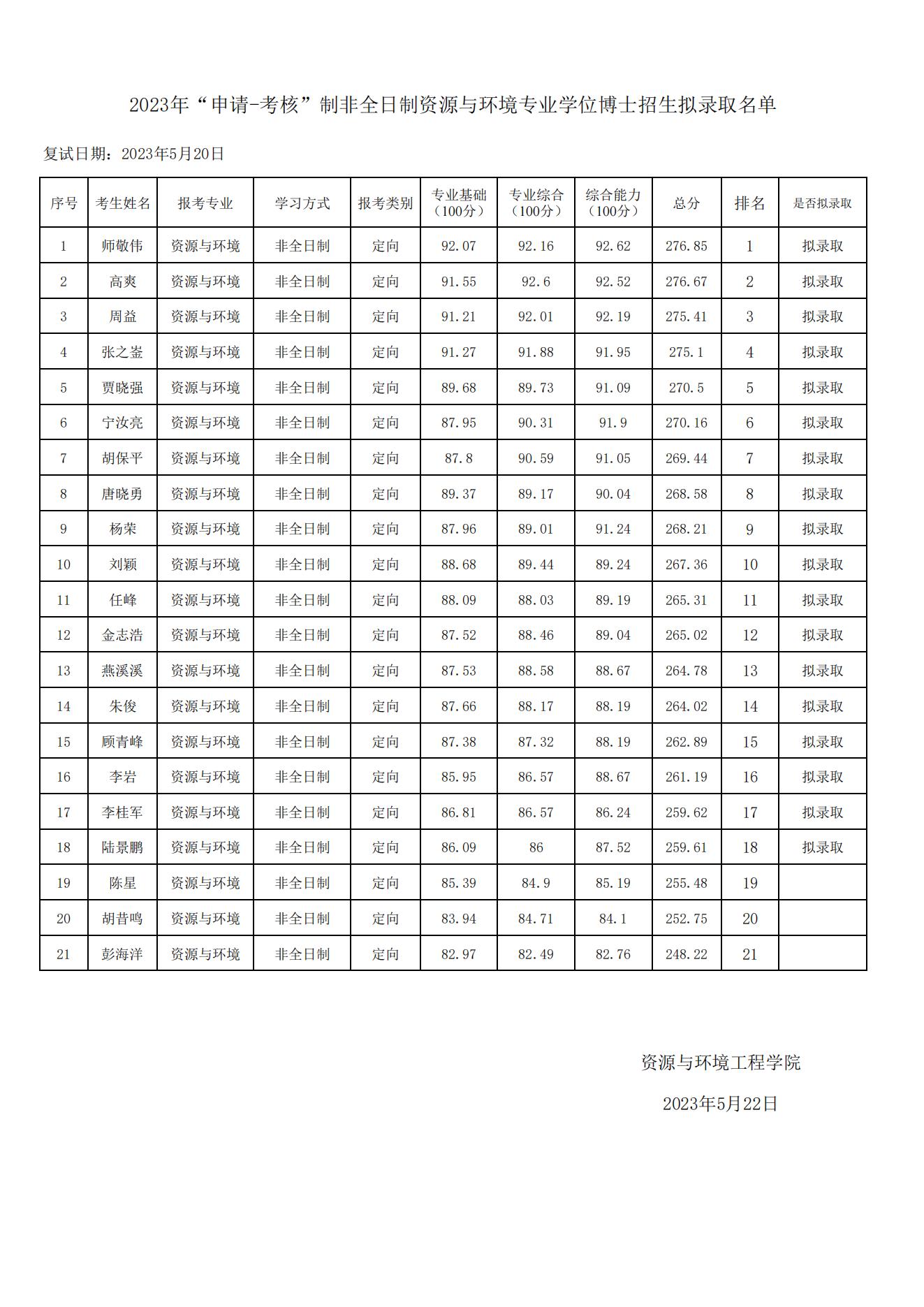 kaiyun开云官方网站2023年“申请-考核”制非全日制资源与环境专业学位博士招生拟录取名单