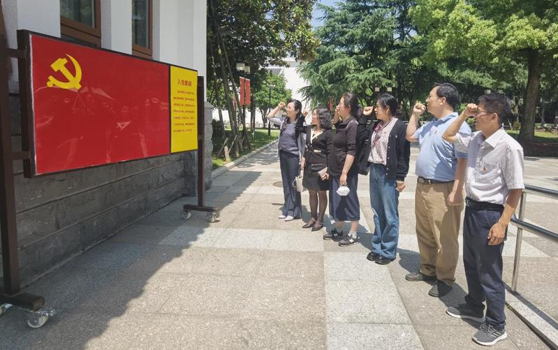 参观结束后,陈雪莉带领全体同志重温入党誓词。面向鲜红的中国共产党党旗,大家举起右拳、庄严宣誓,表达了对党的无限忠诚。