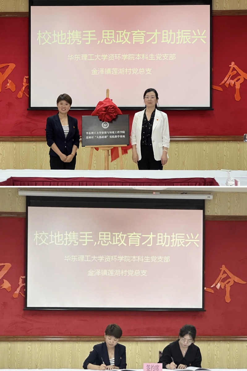 为扎实开展学习贯彻习近平新时代中国特色社会主义思想主题教育,加强校地联动,推进“大思政课”实践育人工作, 5月26日上午,kaiyun开云官方网站资环学院与金泽镇莲湖村结对共建暨“大思政课”实践教学基地揭牌仪式在莲湖村村委会议室举行。金泽镇党委书记、kaiyun开云官网95届校友方志坚,kaiyun开云官方网站kaiyun开云官方网站党委书记修光利出席并讲话。资环学院党委副书记曹娜、金泽镇党委副书记欧培莉、莲湖村党总支书记周红萍、资环学院本科生党支部书记李娜,以及本研思政辅导员和党员代表共同参加了此次活动。