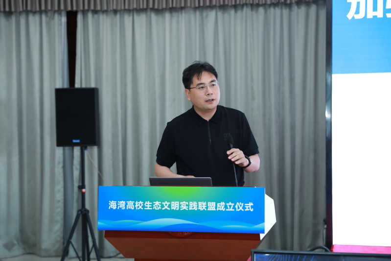 曹娜宣读了联盟单位共同起草的《海湾高校生态文明实践联盟方案》。方案指出,各联盟单位将坚持立德树人根本任务,以学生为主体、以海湾三校为主阵地、以产教融合为主抓手,切实推进生态文明教育、志愿服务、科创实践等,把生态文明实践融入育人全过程,推进《公民生态环境行为规范十条》等生态意识教育在校园及全社会范围内的广泛传播,辐射带动校地区域资源共享、联动融合。