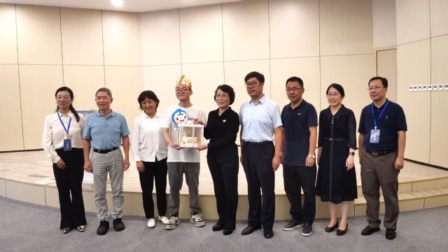 中午时分,校党委书记杜慧芳、副书记沈海涛与校职能部处领导一行莅临现场,与老师们亲切交谈,并慰问参加迎新工作的学生志愿者们。恰逢2023级博士新生杨明明同学生日,学院特意为他准备了生日惊喜。杜慧芳书记祝贺杨明明同学生日快乐,并鼓励他不忘初心,专心科研,珍惜每一寸华理时光,让青春绽放。