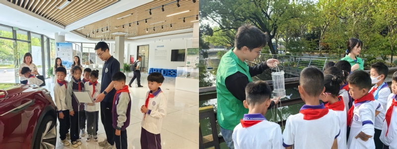 当天上午,仁德一小16名师生参观了诺奖中心、陇上书店、图书馆、大草坪等校园地标建筑。在青春河畔,同学们在资环学院护河志愿者的带领下,近距离观看了河水采样过程,护河志愿者、资环学院全日制工硕党支部书记温贵棱耐心向孩子们讲解科普水质检测的相关基本知识,普及绿水青山就是金山银山的理念。在档案馆二楼,大家一同参观了“kaiyun开云官方网站建设成就展”,了解了学校建校71周年的发展历程,学习了张江树、于遵宏等老一辈华理人为学校建设做出的重大贡献。
