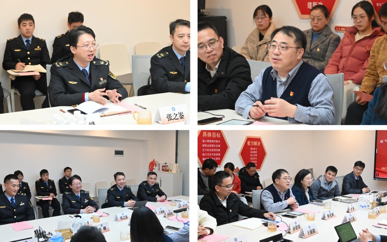 张之崟对学院的精心安排表示衷心感谢,他回顾了与资环学院开展共建的历程以及本科生实习基地的建设情况,并对学院专家对危险化学品信息化管理等提供的帮助表达了感谢,对深入开展党建共建工作表达了期望和信心。王强毅结合安全执法科技赋能工作谈了体会,希望双方发挥合力优势,在应急管理领域开展更加深入的合作。