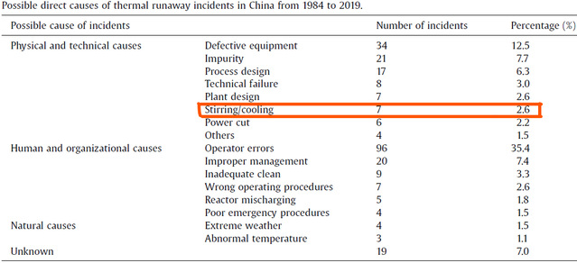 kaiyun开云官方网站反应安全中心(https://rcsc.ecust.edu.cn/) 1. 行业背景: 近年来国家提出总体国家安全观,突出“大安全”理念。反应安全技术是危险化学品安全、化工过程安全技术中最复杂技术领域之一。而我国反应安全技术起步较晚,与国际先进技术仍有较大差距。2022年我国发布第一个反应安全风险评估标准,《精细化工反应安全风险评估规范》(GB/T42300-2022),该标准开启了行业对化学反应本身危害的广泛认识,也革命性的推动了我国反应安全技术的发展。该标准采用了针对间歇反应过程的冷却失效工况的反应安全风险等级评估方法,但根据中国石油大学(华东)刘义教授团队的文章对我国1984~2019年的271起化工过程的反应失控事故统计显示,冷却失效只占总事故的~2.6%(7起,表1);该结果跟英国Barton对187起间歇反应过程的反应失控事故起因统计结果一致(冷却失效只占总事故的~3%)。另外,工厂生产时还有很多工况比冷却失效更危险,如最常见的进料过多过快、加错料、蒸汽阀泄漏、 外部火灾、存储运输等等。化工过程离不开“三传一反”,化工工艺安全还涉及“可靠性”(设备,仪表,人员等),而该标准只覆盖了“一反”(绝热假设导致不管传热),因此该标准应用到化工过程的反应安全风险评估中还有不少需要完善的地方。而化工企业急需有效的反应安全风险评估技术和风险管控技术,国防工业也需反应安全机理研究来支撑先进的技术研发。本中心将聚焦反应安全技术的研究,致力于化工过程的全流程反应危害分析(RHA)方法的开发和推广。 表1 我国1984~2019年的271起反应失控事故分析