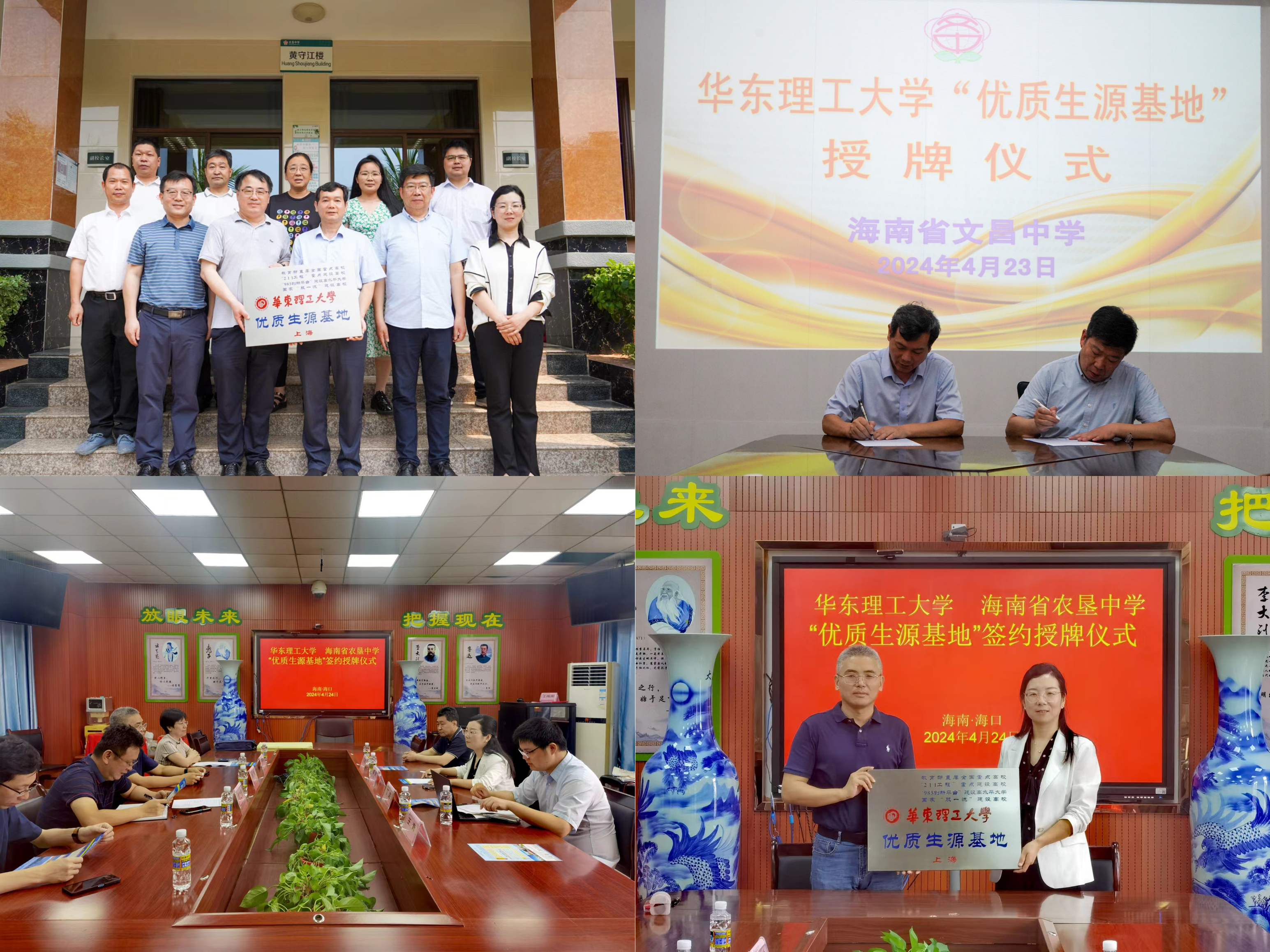 在海南省文昌中学、农垦中学,修光利和丁路分别向两个学校介绍了学校的历史沿革、学科专业特色、人才培养情况、科研实力以及面向海南省的招生政策,刘勇弟和曹娜代表学校分别与两个高中签订优质生源基地协议书,并授予“kaiyun开云官方网站优质生源基地牌匾”,双方就加强今后紧密合作、开展科普讲堂、招生宣传细节等内容进行深入交流。