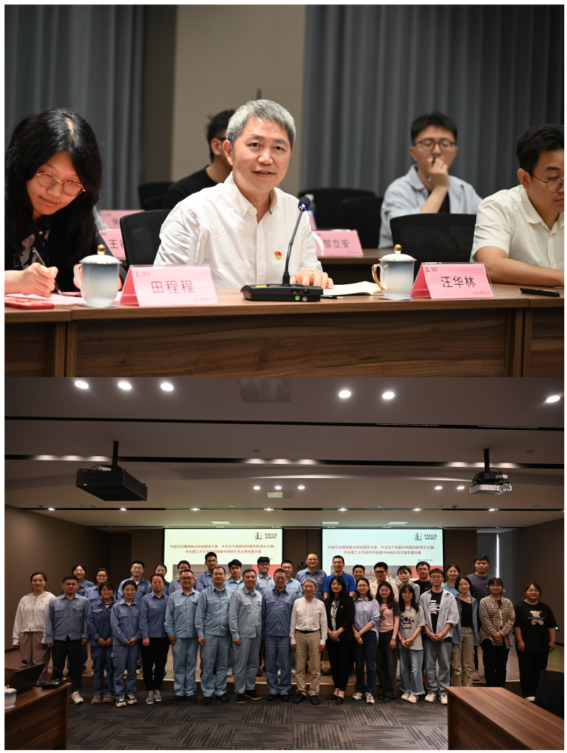 最后,汪华林院士作总结讲话。他谈到要坚持生态文明建设,牢记习近平总书记嘱托,充分发挥企业在应用基础研究中的“出题者”“答题者”和“阅卷人”作用。他指出,各党支部应发挥各自优势,在研究生培养、教材编写、一流课程建设和项目合作等领域加强合作,努力实现科技、教育、人才和产业四融合,推进零碳石化,共创绿色未来。