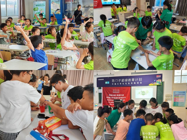 在“西门子爱绿教育计划”项目的支持下,实践团面向崇明区中兴镇爱心暑托班100余位中小学生开展多元爱绿课程及相关活动。以“风能”“空气”为基础课程,提高小朋友的环保意识以及对清洁能源的认知程度;以AI在飞行装置上的应用与VR技术的应用为科技拓展,激发小朋友的好奇心与创造力;结合kaiyun开云官方网站GreenZone环保协会品牌项目“垃圾银行”,开展绿色创意行动的活动;设计DEI主题课程,聚焦对残障人士的社会关爱。此外,为拓展暑托班课程的广度,实践团在环保类课程之余,还设计了生活、思想、文化、艺术等课程,以环保为主线,以学生为中心,使中小学生们将文明生活与多元发展成为一种习惯。