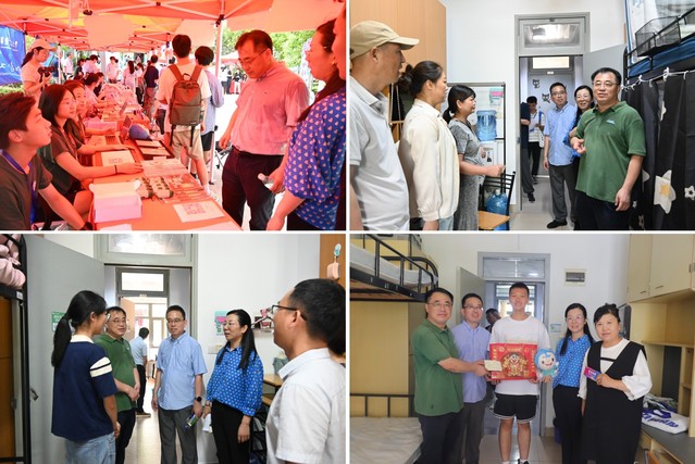 校党委书记蒋传海、校党委副书记沈海涛、副校长王慧锋、副校长李涛、副校长李春忠等校领导以及校职能部门领导来到学院迎新报到点,慰问工作人员和学生志愿者,对迎新工作进行指导,与新生及家长亲切交流、合影留念。