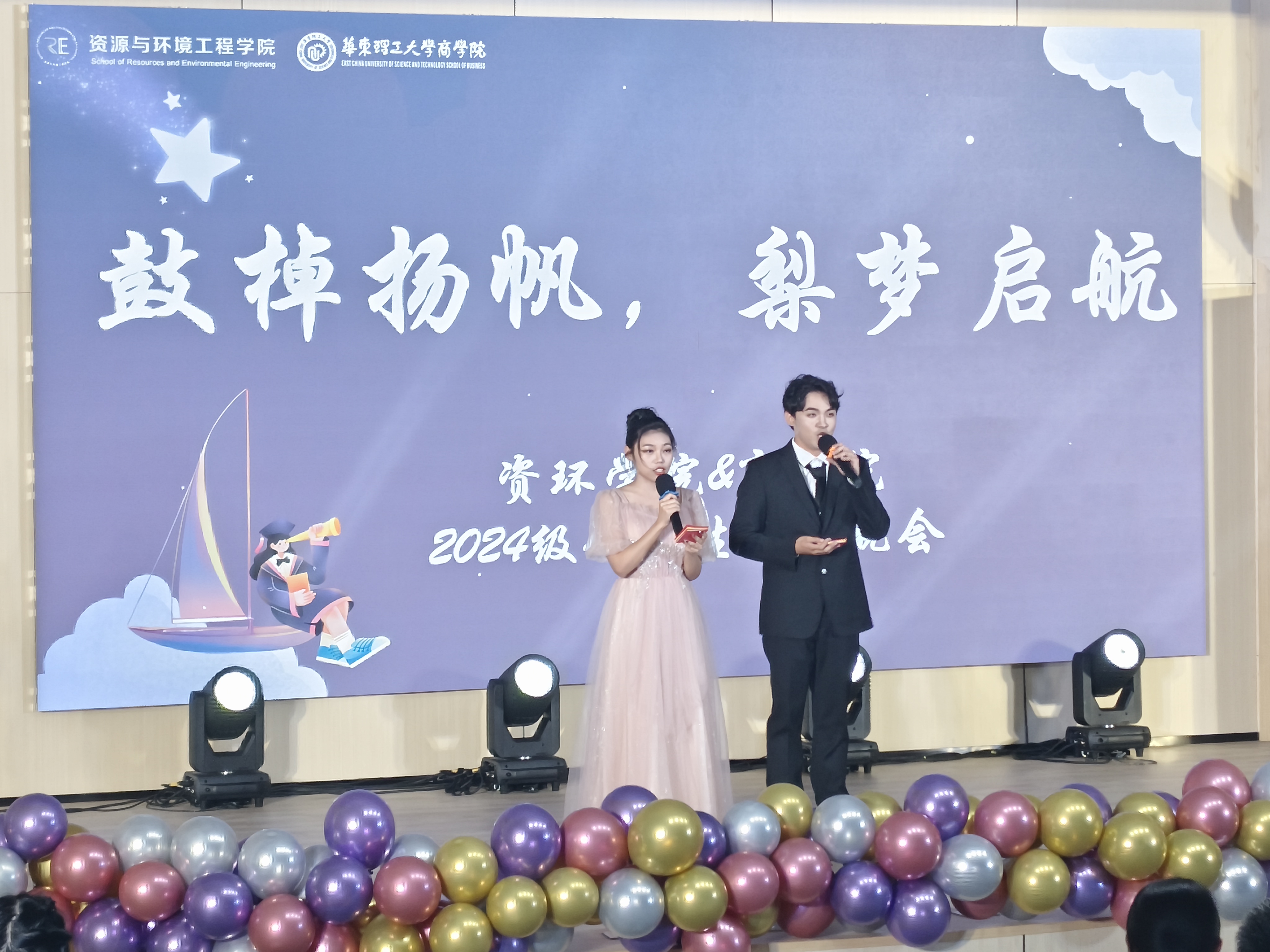 为了提升文化育人实效,11月16日晚,资环学院和商学院联合举办了“鼓棹扬帆·梨梦启航”2024级研究生文艺晚会,资环学院党委副书记曹娜、党政办公室副主任吴月欣、研究生辅导员孙茜、李娜,商学院研究生教学负责老师彭姝雯、李晓博,两院研究生300余人共同参加。晚会由两院2024级研究生新生万骐胜和王艺桥共同主持。