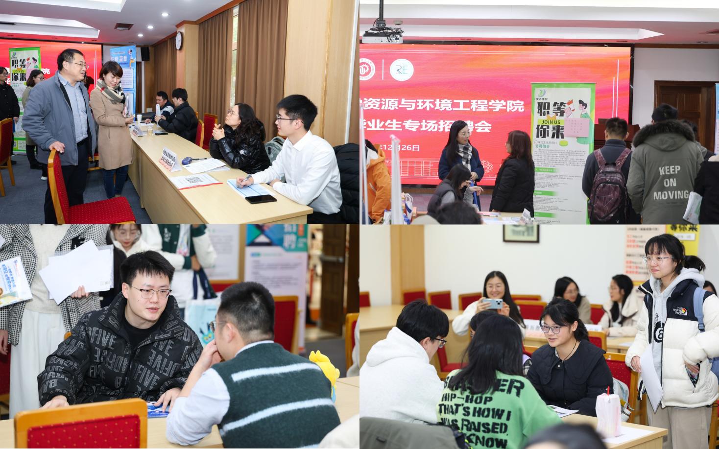 为全力做好2025届毕业生就业工作,促进毕业生更加充分更高质量就业,12月26日,资环学院举行2025届毕业生专场招聘会暨用人单位座谈会。资环学院党委书记修光利、副书记曹娜、环境系主任周磊、能源系主任邱恺培、学院负责就业工作本研辅导员到场与用人单位进行交流。