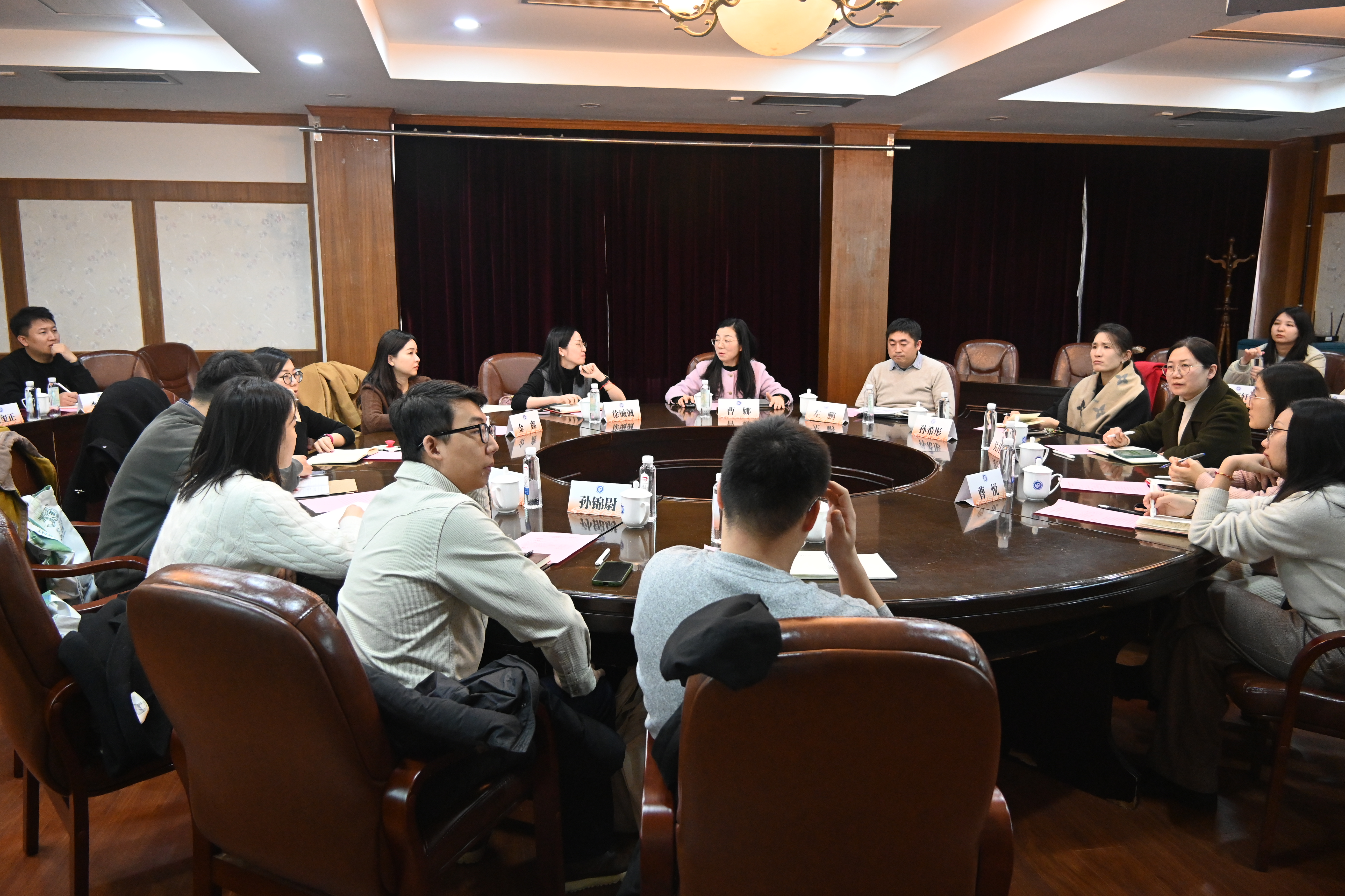 在双方介绍完毕后,会议进入了交流研讨环节。参会人员围绕学生工作管理体系和组织架构、党建工作的特色和亮点、学生科技创新工作的做法和经验、研究生德育工作的特色和举措、共青团工作的思路和方法等进行了深入交流和探讨。