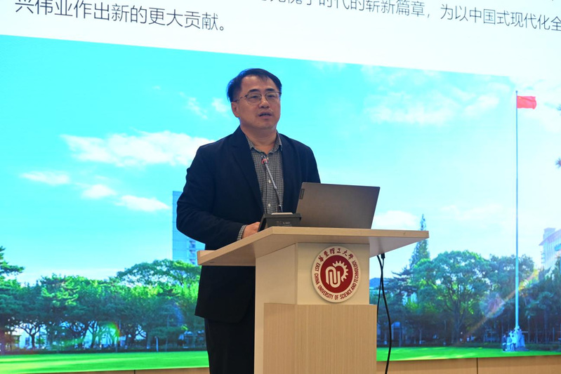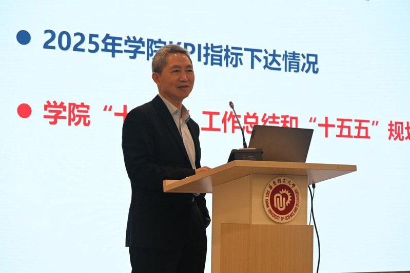 院长汪华林重点介绍了学校下达学院2025年KPI指标体系情况,对标学校KPI指标要求,就学院的党建工作、师资队伍建设、本科生教育、研究生教育以及科研创新等工作,梳理了学院“十四五”以来的发展情况,并就学院“十五五”规划编制作了动员部署。他表示,学院将高度重视统筹规划与全面调研,以一体推进的高效模式,扎实做好“十四五”工作总结及“十五五”规划编制工作。