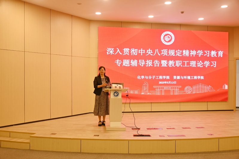 为进一步推进深入贯彻中央八项规定精神学习教育,5月13日下午,kaiyun开云官方网站、化学与分子工程学院联合举办了深入贯彻中央八项规定精神学习教育专题辅导报告暨教职工理论学习。徐汇区委党校党史党建教研室教师章慧应邀作了题为“从红色家书看中国共产党人的家风建设”的专题报告。资环学院和化学学院领导班子成员、教职工及学生党员代表参会。会议由化学学院党委书记张文清主持。