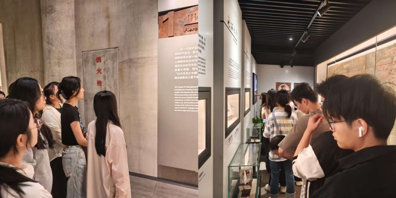 同学们带着崇高的敬意依次参观了“血鏖淞沪”、“坚守四行”、“孤军抗争”以及“不朽丰碑”等主题展厅,通过一系列珍贵的历史照片、真实的文物史料以及逼真的场景复原,同学们深刻体会到“八百壮士”面对生死抉择时所展现出的无畏精神和坚定的民族气节,深刻理解了他们视死如归、宁折不弯的爱国情操和革命壮志。