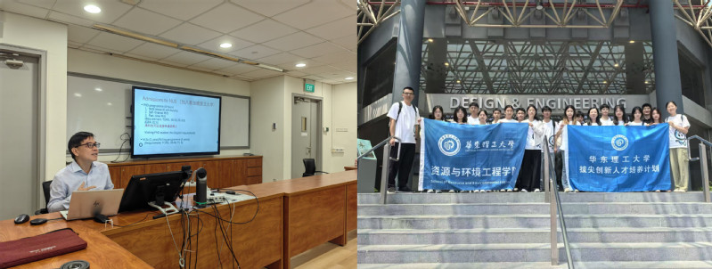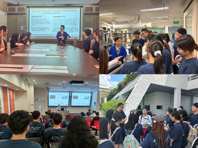 在南洋理工大学,实践团开展了行业前沿讲座、专业实验室参观、国际化课程旁听等活动。新加坡工程院院士、南洋理工大学资源与水环境研究院主任王蓉教授结合自身研究与NEWRI的发展实践,介绍了研究院在资源勘察、新生水生产及水环境治理等领域的研究前沿与代表性项目,重点围绕“新加坡可持续供水系统”与“先进水处理技术”,从新加坡水资源现状、供水系统布局,到膜分离、高级氧化等水处理关键技术的应用场景,层层深入地为同学们讲解了缺水型城市如何通过技术创新实现水资源高效利用与循环,内容丰富且紧密贴合资源与环境工程专业的核心关切。她还带领师生参观了生物环境技术中心、膜技术实验室、环境分析实验室,围绕膜制备以及放大应用的问题对学生进行启发教学。实践团还旁听了土木与环境工程系的Project Planning&Management课程,授课教师Dr Teoh Bak Koon结合新加坡本地的工程案例进行讲解分析,与实践团师生进行交流。
