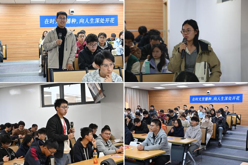 现场学子积极提问互动,大家围绕大学生活体验、未来发展方向、职业路径选择等话题与嘉宾交流,嘉宾们逐一耐心解答,现场响起阵阵掌声。分享会现场还举行了资环学院第二届“青绿” 朋辈讲师团聘任仪式,邵新宇和高煜为讲师团本研学生代表颁发了聘书,最后,崔姗姗为与会嘉宾颁发了特邀报告证书。