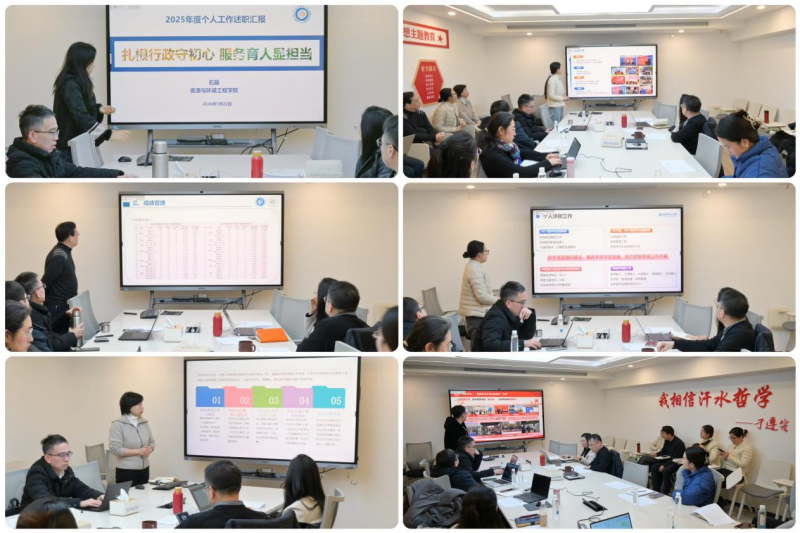 为全面复盘2025年度行政思政工作成效,精准梳理短板弱项,科学谋划2026年工作蓝图,1月22日上午,资环学院在六教206会议室举办了行政思政教师述职交流会,学院领导班子、党委委员、纪委委员、教师代表参加述职会。