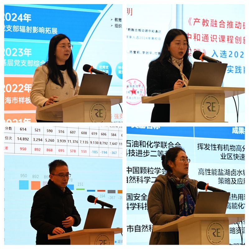 资环学院党委副书记曹娜、陈雪莉,副院长孙贤波、隋倩分别就学院2025年学生工作及校友工作,纪委工作及研究生教育教学、本科教育教学、科研创新、实验室安全以及党委委员履职情况等工作取得的成效进行了汇报,同时就工作中的主要问题、难点进行了分析,对下学期的重点工作作了部署。